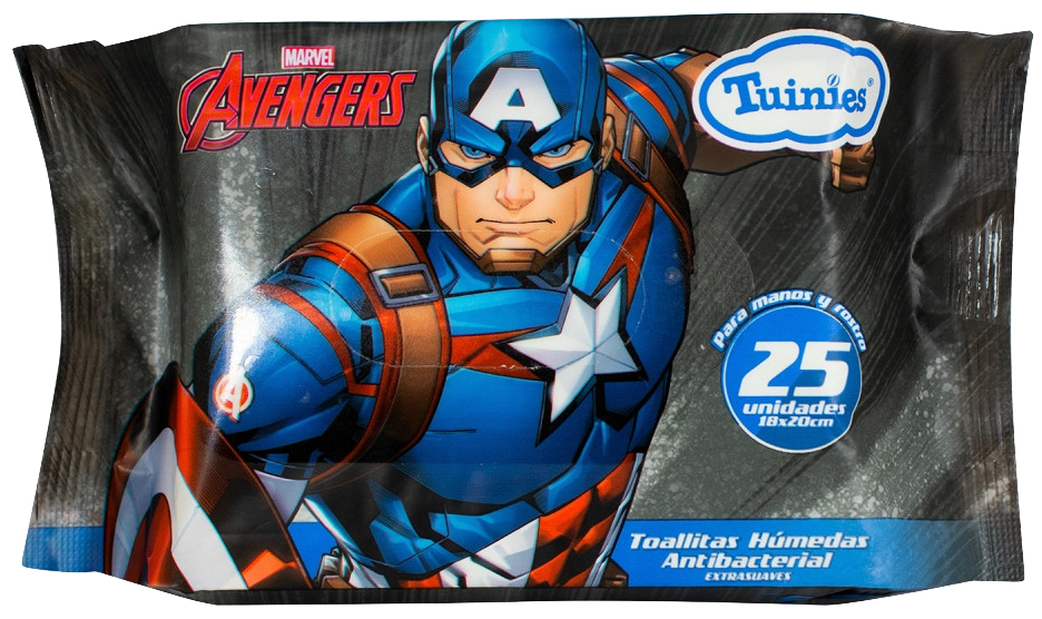 Toallitas Húmedas Antibacteriales MARVEL Avengers Capitán América Tuinies Paquete 25 unid